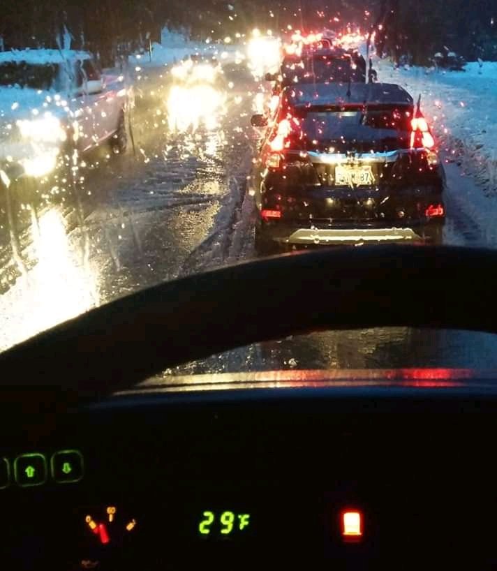 If you are headed up to the pass and chains are required, it is better to chain up a few miles ahead of the check station where the road i.s NOT 10 inches deep in slush. Waiting till the last minute may put you in the transition zone where the road is a cold sloppy slush. Same is true coming down off the mountain. If you stop in the transition zone there can be a nasty deep slush making it wet getting under the bus to unhook the chain’s inside hook. It’s ok to drive with chains at under 20 MPH on wet pavement to get to a safe spot to remove them.
